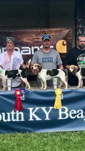 Kat finished for AKC Field Champion at South KY Beagle Club with a total of 10 placements (5 wins) under 19 different judges!! It’s been a long road with her after suffering from Eurlichia and so many other challenges to overcome. Dare I say I will never have another one like her…EVER!! Over the past few years around the trial circuit and amongst friends, her personality took on a human like quality that provided many laughs, stories, and good times. I’d like to thank everyone who helped me get her to the trials, conditioned her when I couldn’t, and smacked me in the head when I wanted to give up on her. As a friend put it “she deserves to have the FC title, now suck it up and do your part… Owner-Kelly Bonnette