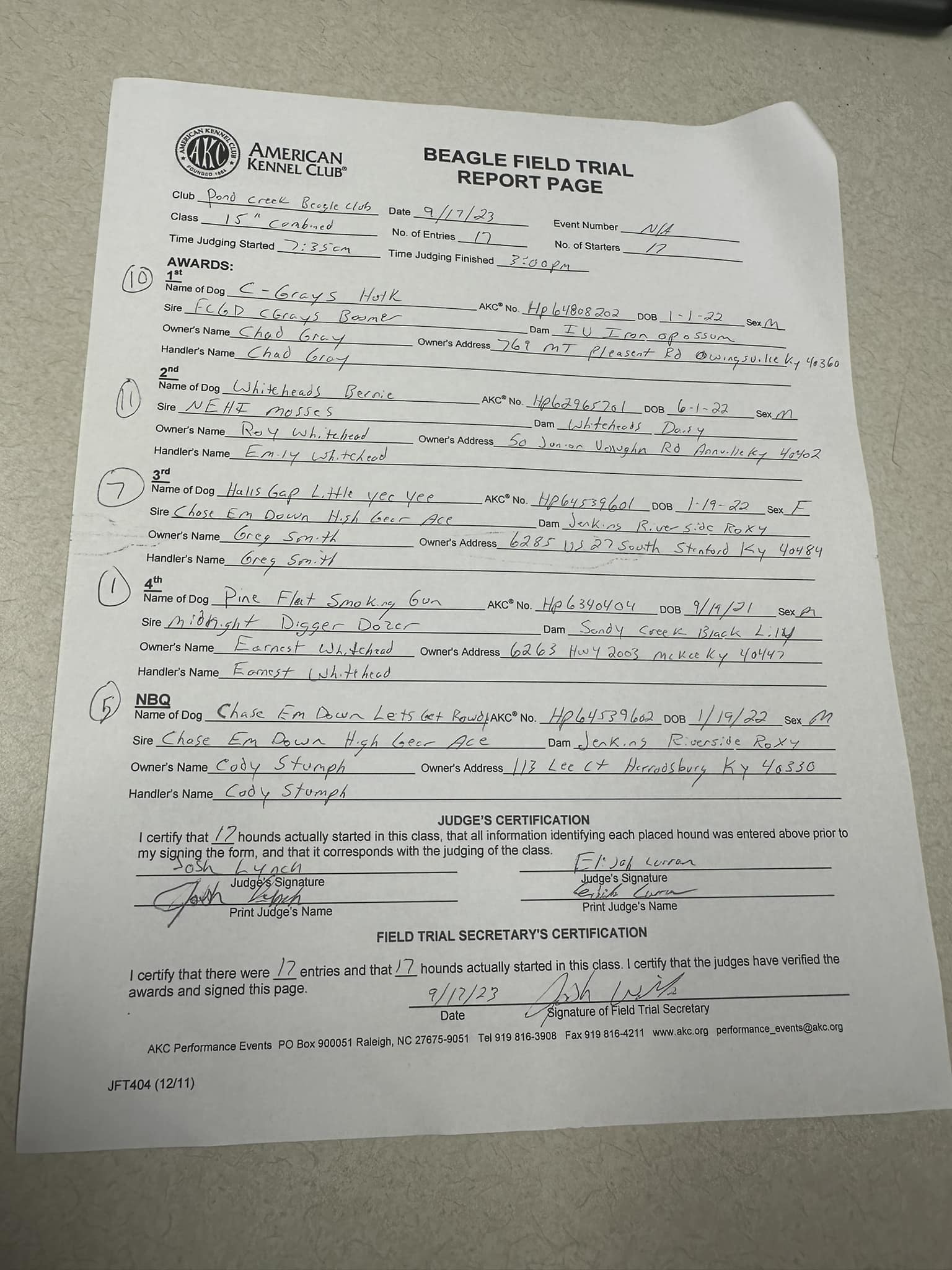 AKC Field Trial Entry Form